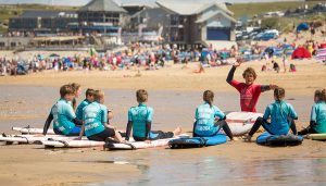 Group surf lessons at fistral beach